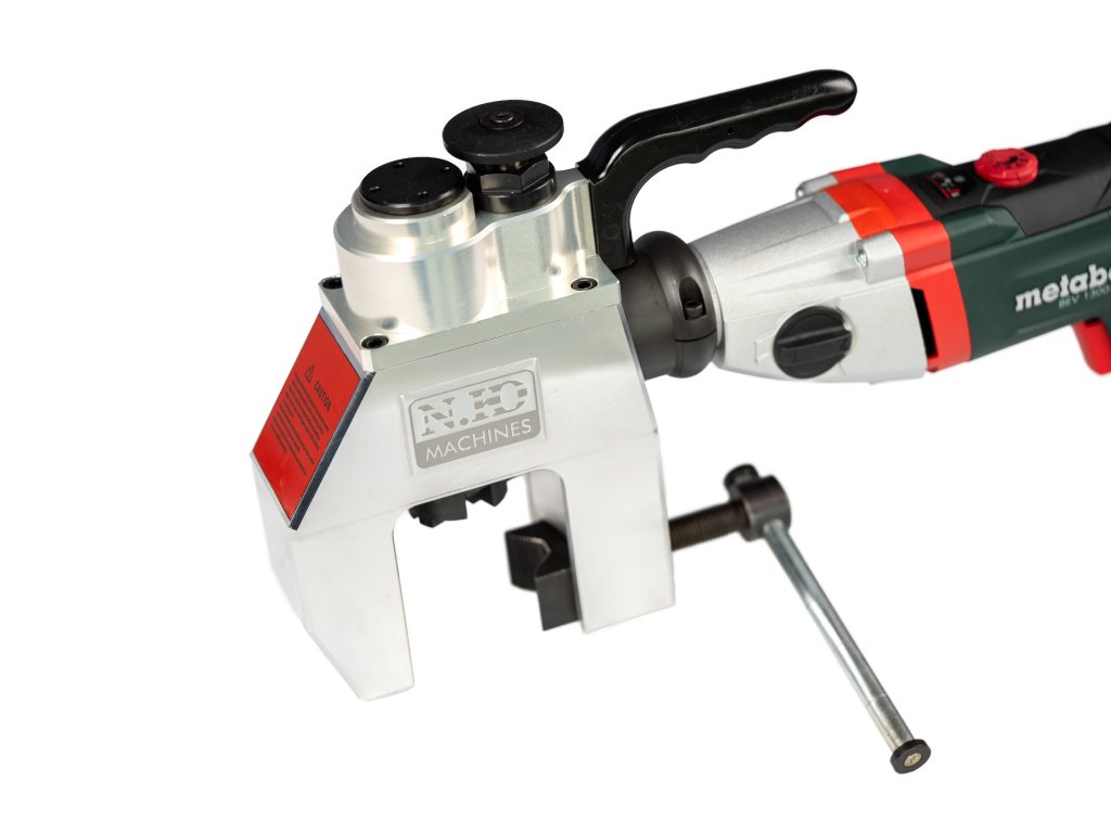 Das Abschrägungssystem C-Biter 114E wurde als tragbares Gerät zur Vorbereitung von Schweißflächen an Rohren und Rohrleitungen entwickelt. Es zeichnet sich durch einfache Bedienung, Zuverlässigkeit und eine großzügige Leistungsabgabe für die Bearbeitung von Rohren mit einer Wandstärke bis zu 12 mm (.47") aus.Der C-Biter 114E ist eine Maschine mit Außenklemmung des Rohrs. Die Klemmung und Zentrierung der Maschine erfolgt über einzigartige Zentrierbacken außerhalb des Rohrs. Dank des automatischen Vorschubs ist die Bearbeitung dickwandiger Rohre äußerst produktiv und komfortabel. Die Maschine kann zum Anfasen von Rohren, aber auch zur Bearbeitung von Vollstangen verwendet werden.