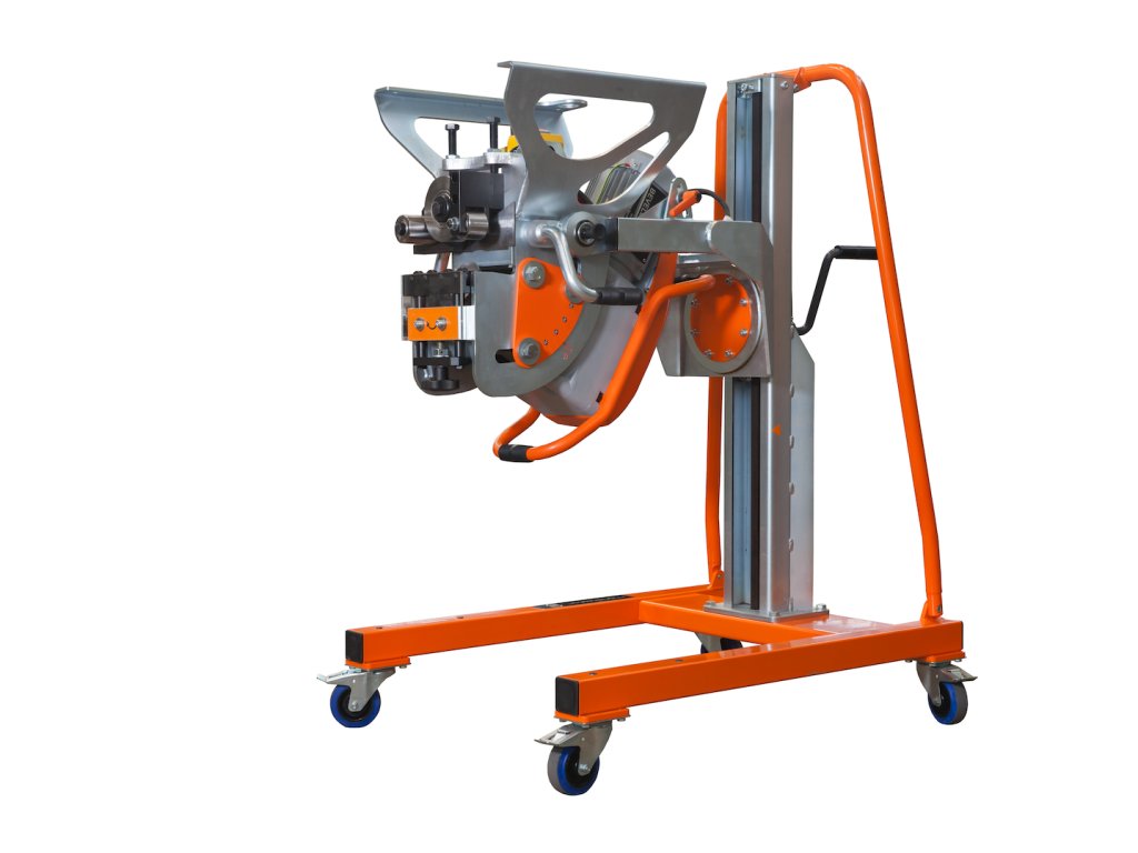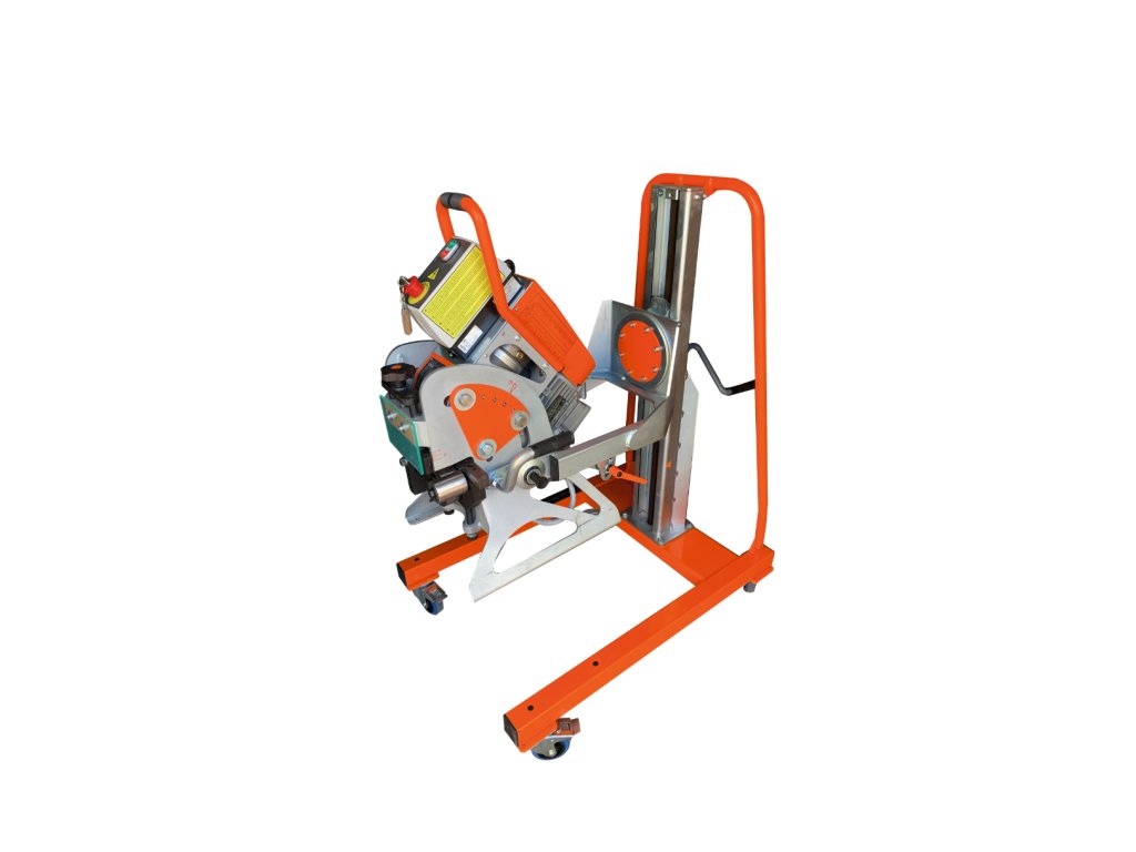 - La chanfreineuse d’usinage UZ50 est sur un manipulateur, elle est donc mobile aussi bien le long de la tôle qu’en rotation. La machine peut ainsi tourner de 180°, et réaliser les chanfreins des deux cotés en X, K , V. En conséquence l’opérateur travaille en parfaite autonomie sans moyens de levage d’où un gain de temps important.