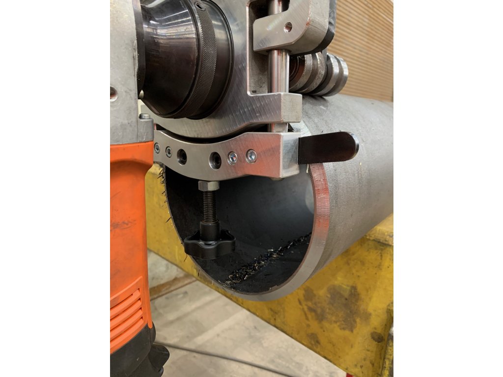 Elle permet la fixation de chanfreineuses B10 Electra ou B15 Electra et permet le maintien de la machine sur le tube ainsi qu’un usinage guidé, l’opérateur n’a plus besoin de surveiller les appuis et de gérer la rotation simultanément.