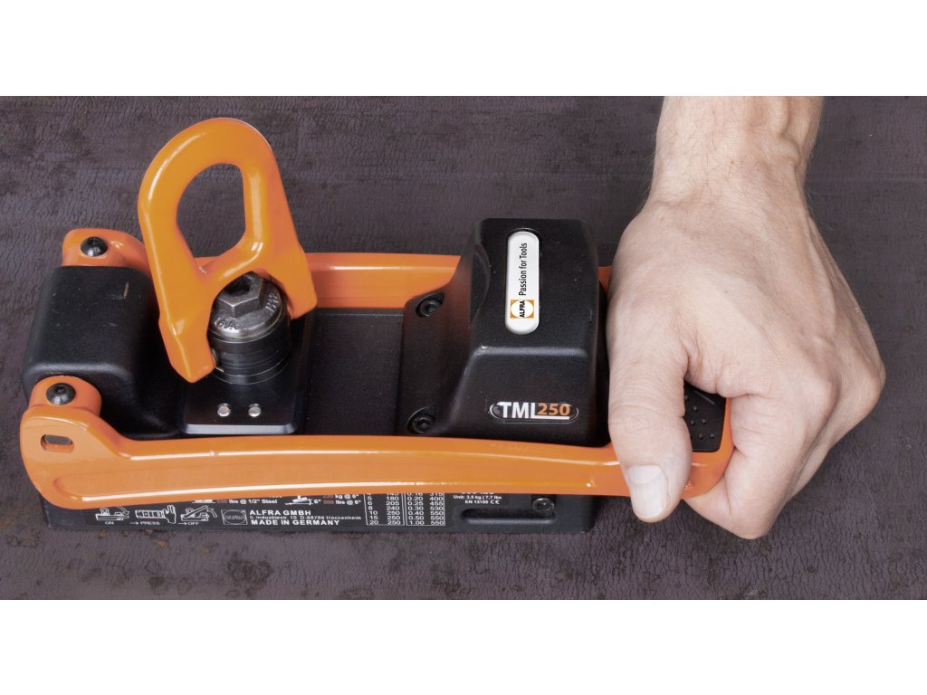 Sur des matériaux d'une épaisseur de 3 mm, la force de maintien est déjà de 90 kg (pour les aciers non revêtus et inoxydables). À partir d'une épaisseur de dix millimètres, le TML 250 convainc par sa capacité de charge de 250 kg, avec un triple facteur de sécurité.