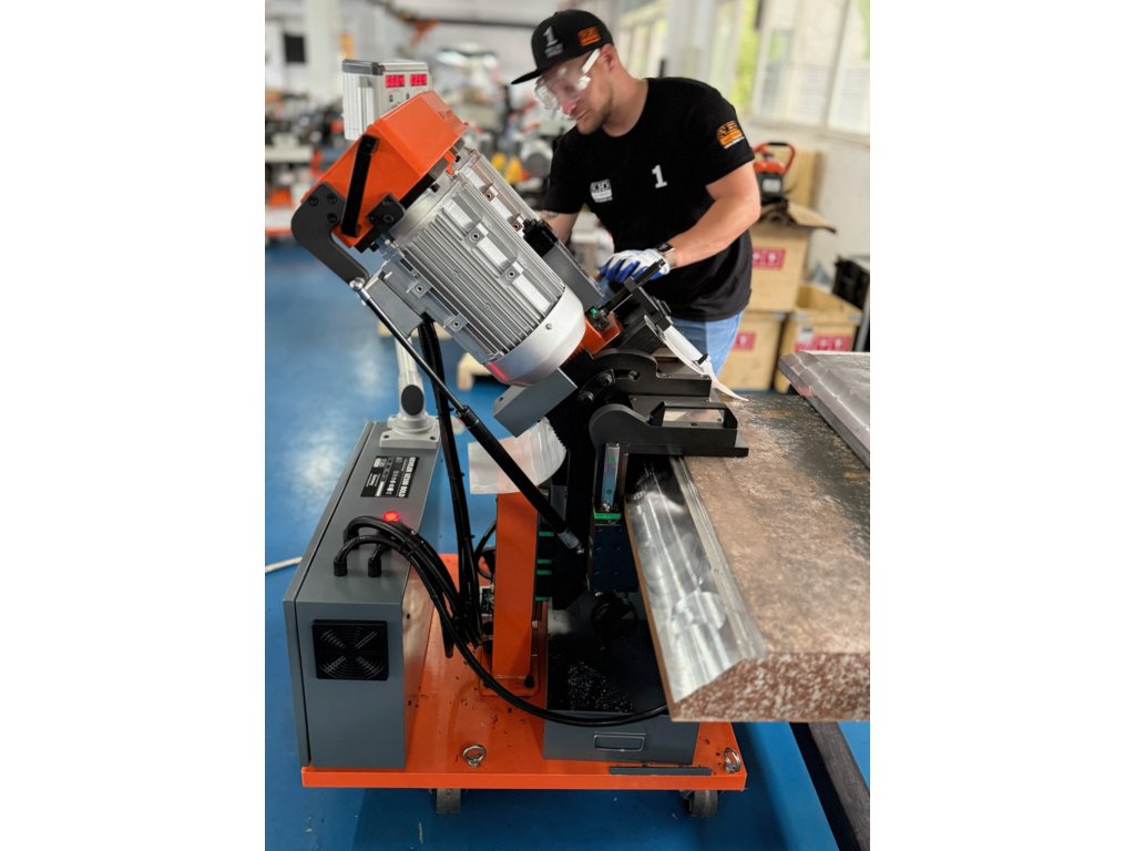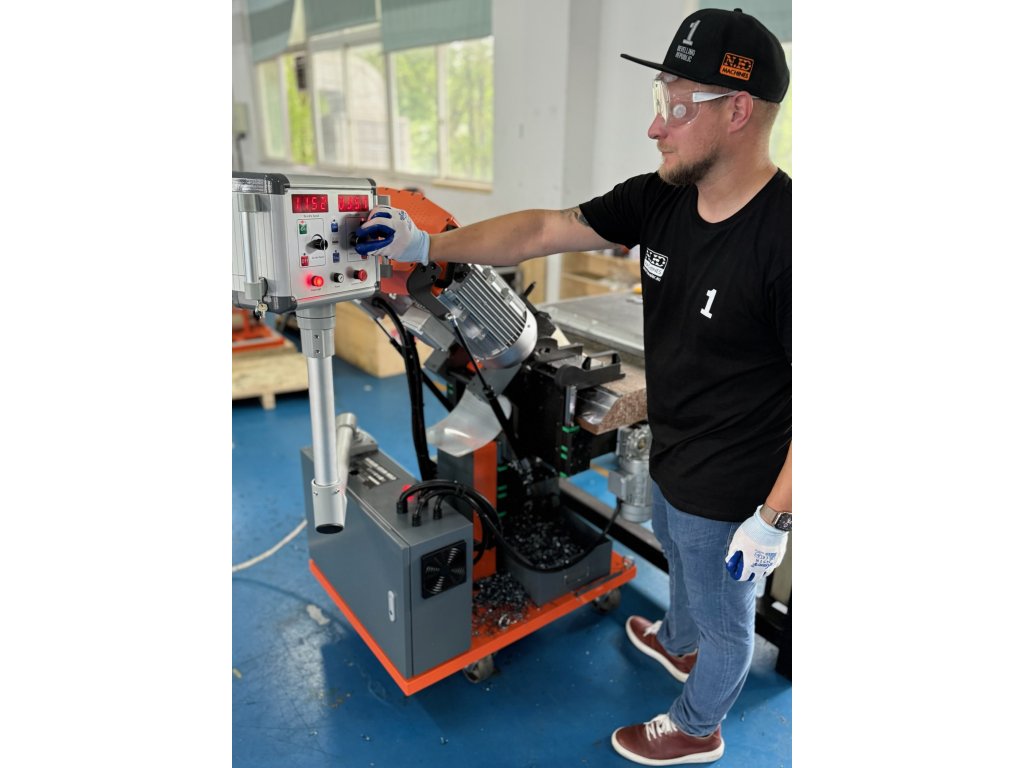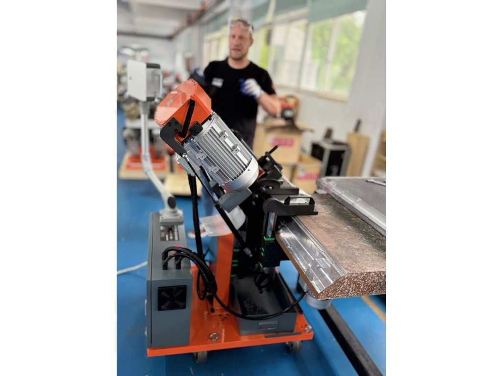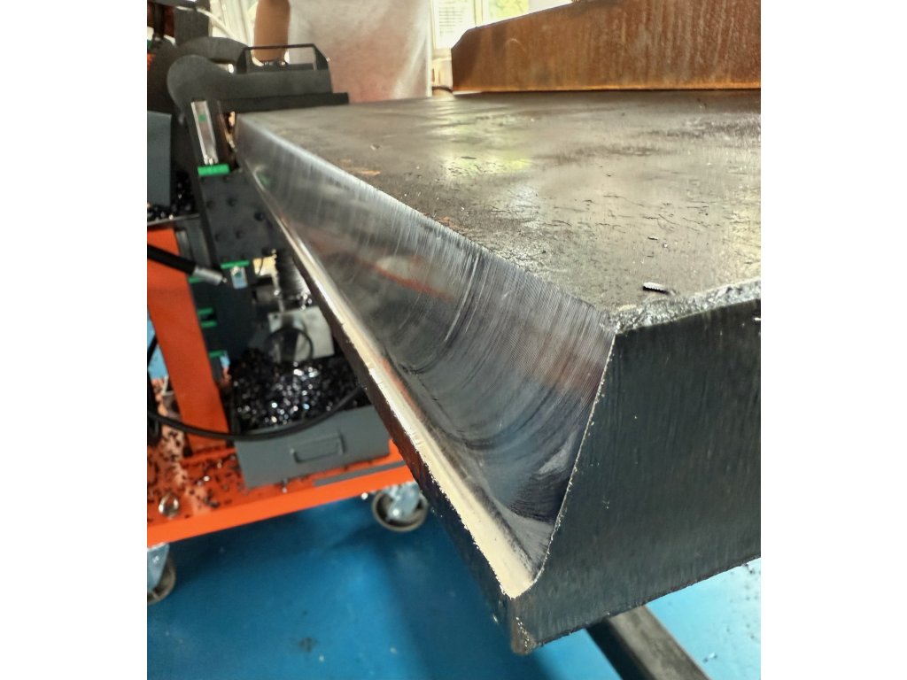 Machine à chanfreiner polyvalente unique avec avance automatique pour des applications telles que le chanfreinage en V, le chanfreinage en J, l'enlèvement de revêtement, le dressage et les chanfreins à +70°.