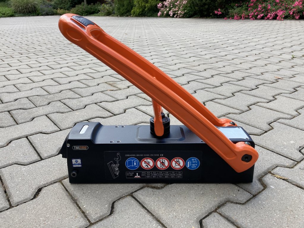 Il più potente tra i nostri magneti viene utilizzato quando è necessario spostare carichi davvero pesanti. Il nostro potente magnete, che pesa solo 18 kg, è in grado di sollevare fino a una tonnellata con uno spessore del materiale di 12 mm e un fattore di sicurezza di 3:1. Come tutti i modelli della serie TML, è dotato della tecnologia magnetica brevettata per il “sollevamento di materiali sottili”. In concreto, ciò significa che il TML 1000 sviluppa una forza di sollevamento impressionante di 220 kg già a partire da uno spessore del materiale di 2 mm. La gamma di possibili applicazioni è impressionante. È possibile, ad esempio, trasportare travi a T senza doverle prima capovolgere e quindi senza danneggiarne il rivestimento. Il design intelligente consente l'attivazione del magnete all'interno della trave. Il vortice di carico ruotabile di 360° garantisce la massima flessibilità. Spostate piastre ferromagnetiche, componenti o lamiere in modo sicuro e preciso da A a B, ad esempio nella costruzione di metalli, contenitori, navi o capannoni. Essendo un magnete permanente, il TML 1000 funziona anche indipendentemente dalla rete elettrica. Inoltre, il TML 1000 è personalizzabile se altre strutture possono essere avvitate in modo sicuro al magnete, ad esempio per l'allineamento di parti metalliche. Il TML 1000 durerà a lungo, perché grazie alla superficie magnetica resistente con rivestimento in TiN è estremamente robusto e resistente ai danni.